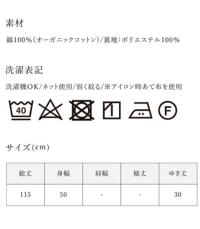 〈素材:綿100%(オーガニックコットン)/裏地:ポリエステル100%〉
