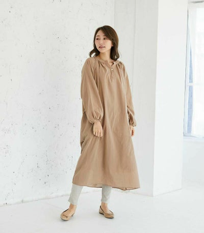 薄手の生地ですが二重なので透け感も気にならずインナーさえ着ていればこれ一枚で着用できます。 レギンス、デニムを合わせても素敵です。 春先から上にカーディガン等を羽織れば秋まで長く着れると思います。 腕を捲れるので、赤ちゃんのお世話や家事がしやすいところオススメです。