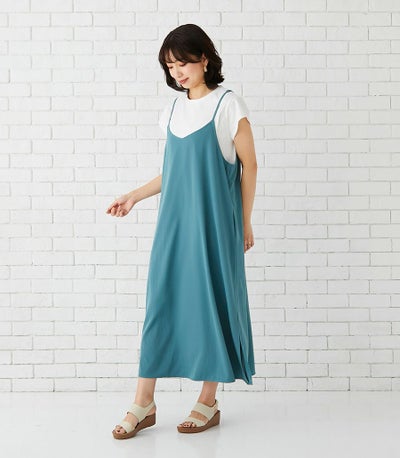 モカを買いました。写真で見るよりも薄く感じる「モカ」でした。 絶妙に肩ひもが内側にあり、ずり落ちません。肩ひもを長めにしたら若作りになるかなと思いましたが、結構長めにしても品があります。でも職場ではつい何かを羽織ってしまいますが。 体のラインは拾わず、安心して着ていられます。汗をたくさんかくと汗じみはできましたがすぐに乾きました。 足もとのスリットもほどよい感じです。なんとなくレギンスなどをはいてしまいますが、素足でもいけそうです。冬はハイネックとタイツなどを合わせて、一年中着ようと思います。