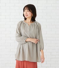 生地がやわらかくて着心地がいいです。ガーゼのようなふわふわした感じで、洗濯した後すぐ乾くのも利点。 -